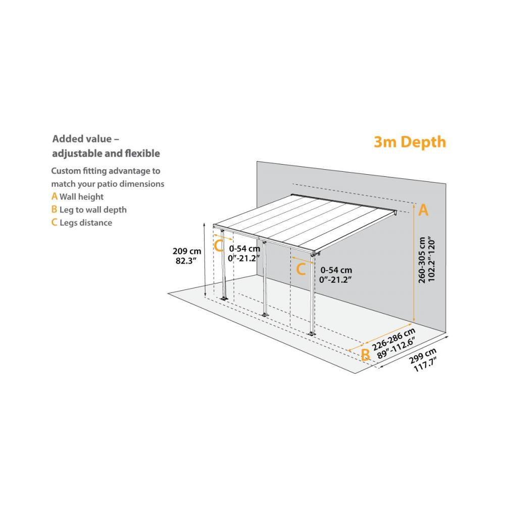 - Az állítható rögzítőknek és csúsztatható támasztó oszlopoknak köszönhetően, megfelel szinte minden típusú teraszhoz.