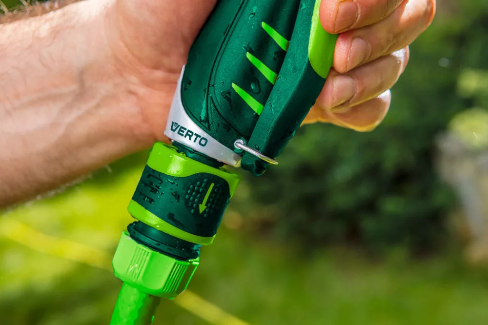 Szabályozós öntöző pisztoly, különböző erősségű áramlás, első reteszelő kar, dupla anyagú fogantyú