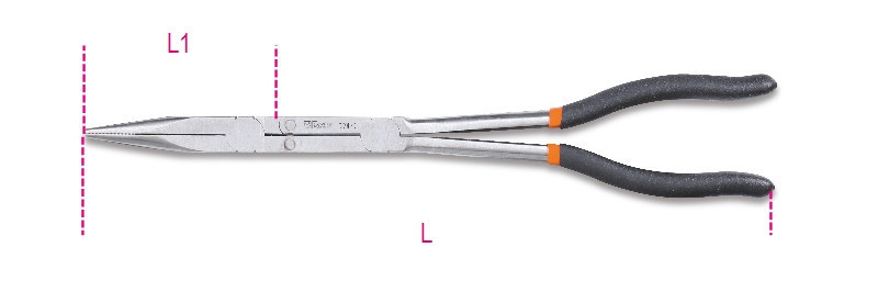 BETA 1009L/D Extrahosszú, félkerekcsőrű recézett műszerészfogó kettős csuklóval kétrétegű, csúszásgátló PVC bevonatú nyéllel (010090058)