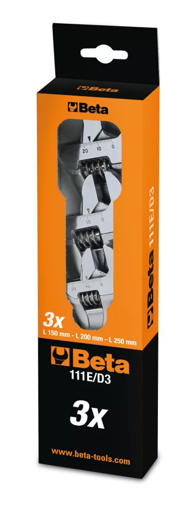 BETA 111E/D3 3 darabos állítható villáskulcs készlet skálával, krómozott (001110163)