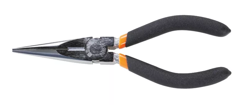 Egyenes extra hosszú félkerekcsőrű fogó, csúszásmentes kétrétegű PVC bevonatú markolat ipari kivitel