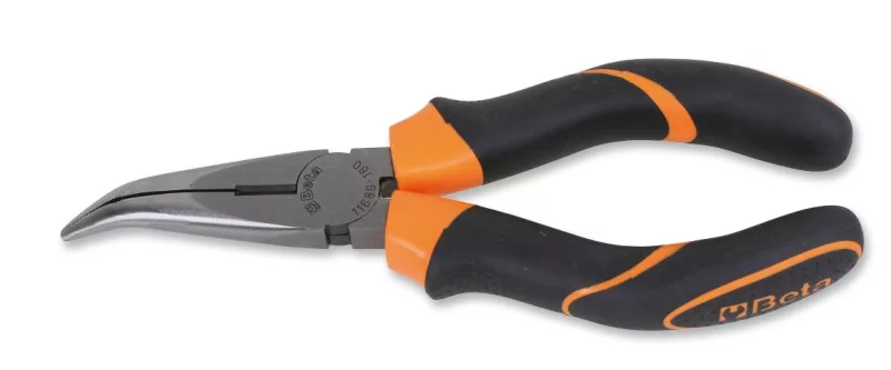 Hajlított extra hosszú félkerekcsőrű fogó, kétkomponensű markolat ipari kivitel