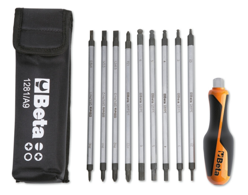 BETA 1281BG/A9 9 darabos csavarhúzószár készlet 1 csavarhúzónyél, tokban (012810520)