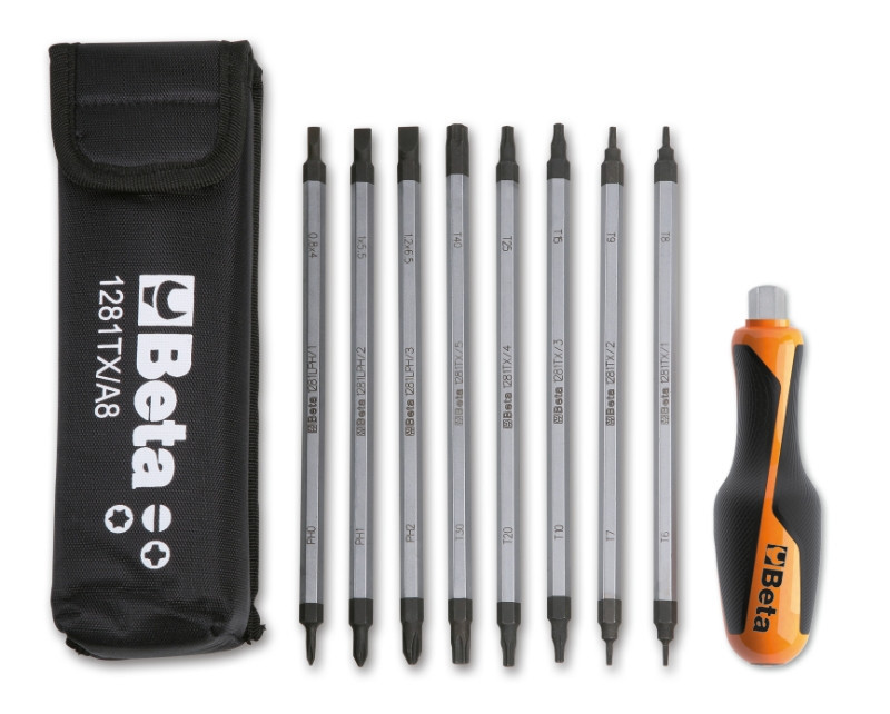 BETA 1281BG-Tx/A8 8 darabos csavarhúzószár készlet 1 csavarhúzónyél, tokban (012810530)