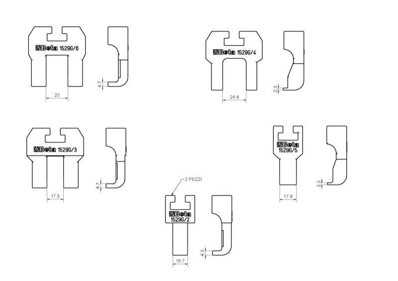 • 1 befogópofa kettős, 2,3 mm lábbal