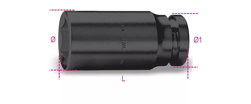 BETA 730L 55 Hatszögű gépi dugókulcs, 1,1/2"-os négyszögletes csatlakozó, hosszú, foszfátozott (007300355)
