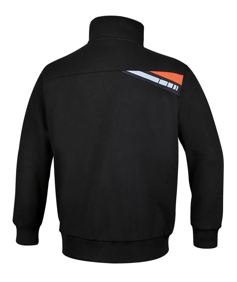 280 g/m2 • 60% pamut, 40% poliészter • Rugalmas mandzsetták • Két nagy cipzáros zseb a derékrészen • Függőleges cipzáros zseb a mellrészen