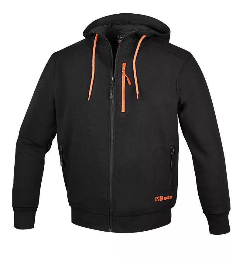 • 280 g/m2, 60% pamut, 40% poliészter • Rugalmas mandzsetták • Két nagy cipzáros zseb a derékrészen • Függőleges cipzáros zseb a mellrészen • Kapucni kerek zsinórral