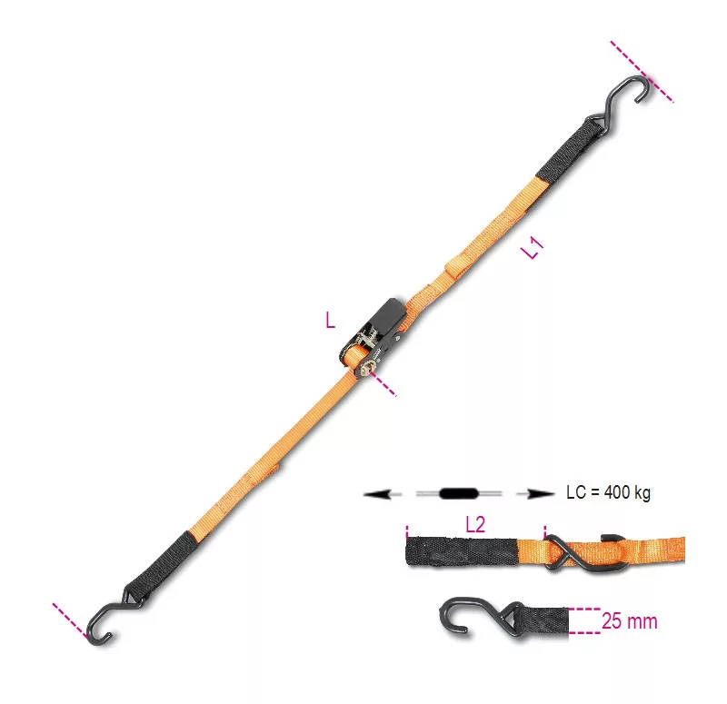 BETA 8188CG25 5 Racsnis 2 horgos rögzítő heveder, LC 375 kg nagy szakítószilárdságú polieszter szalag (PES) (081880450)