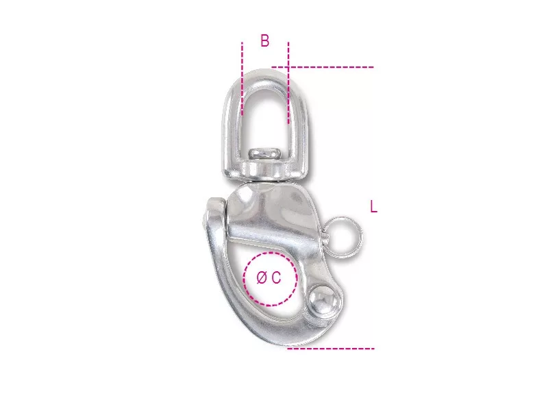 BETA 8273 16 Karabiner horog gyorscsatlakozóval és szemes forgószem Nemesacél AISI 316 (082730016)