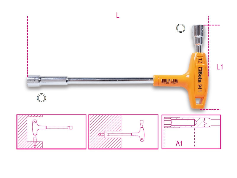 BETA 941 9 mm T-szárú dugókulcs,műanyag markolattal (009410109)