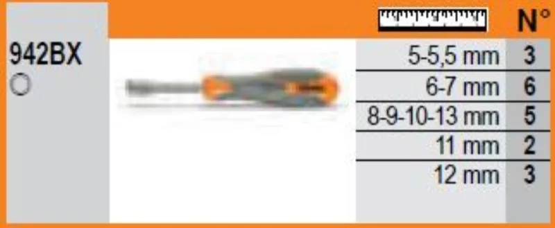 BETA 942BX/DG Fali állvány 43 hatlapú dugókulcs-csavarhúzóval, rövid kivitel (009420701)