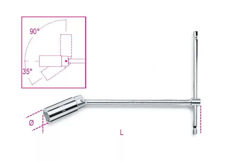 BETA 957 20,8 Rövid csuklós T-gyertyakulcs, krómozott (009570001)