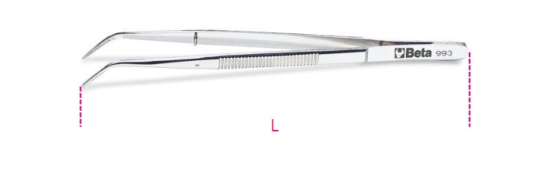 BETA 993 145 Hajlított végű csapos csipesz lekerekített fogazott heggyel, rozsdamentes acélból, polírozott (009930001)