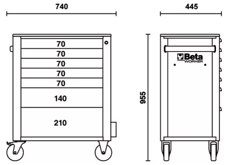 BETA BW 2400S-O7/E-M Worker 7 fiókos szerszámkocsi 309 darabos szerszámkészlettel (024006324)