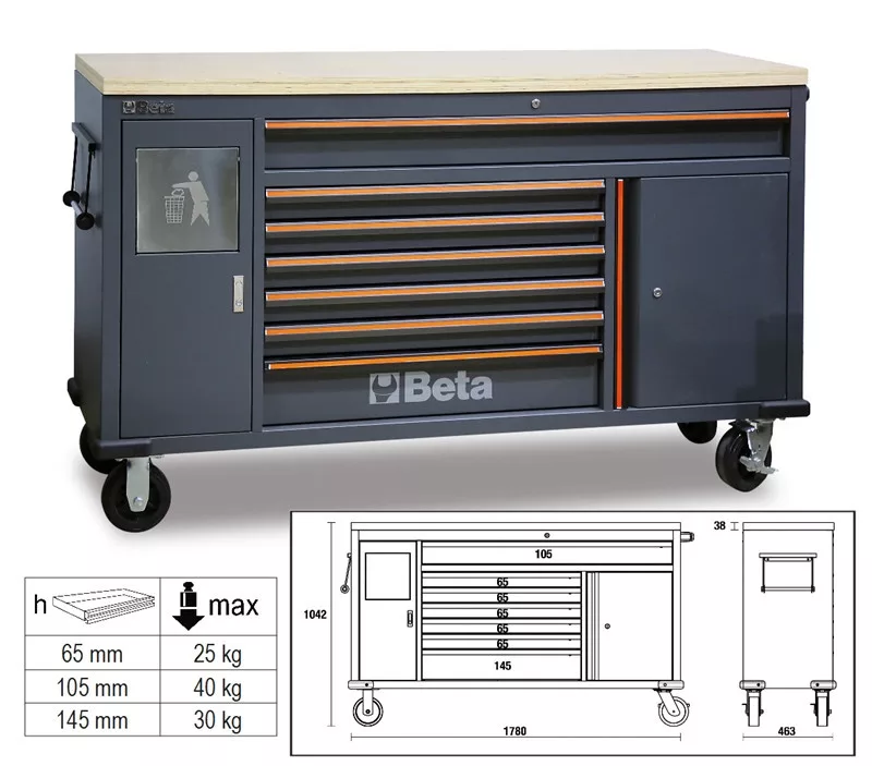 BETA C45PRO MWS/W 7 fiókos szerszámkocsi beépített hulladéktartóval (045000191)