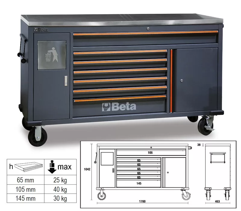 BETA C45PRO MWS/X 7 fiókos szerszámkocsi beépített hulladéktartóval (045000181)