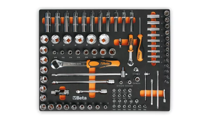 BETA MM100 EVA habszivacs tálca 1/4"-os és 1/2"-os hosszú dugókulcsokkal (024580100)