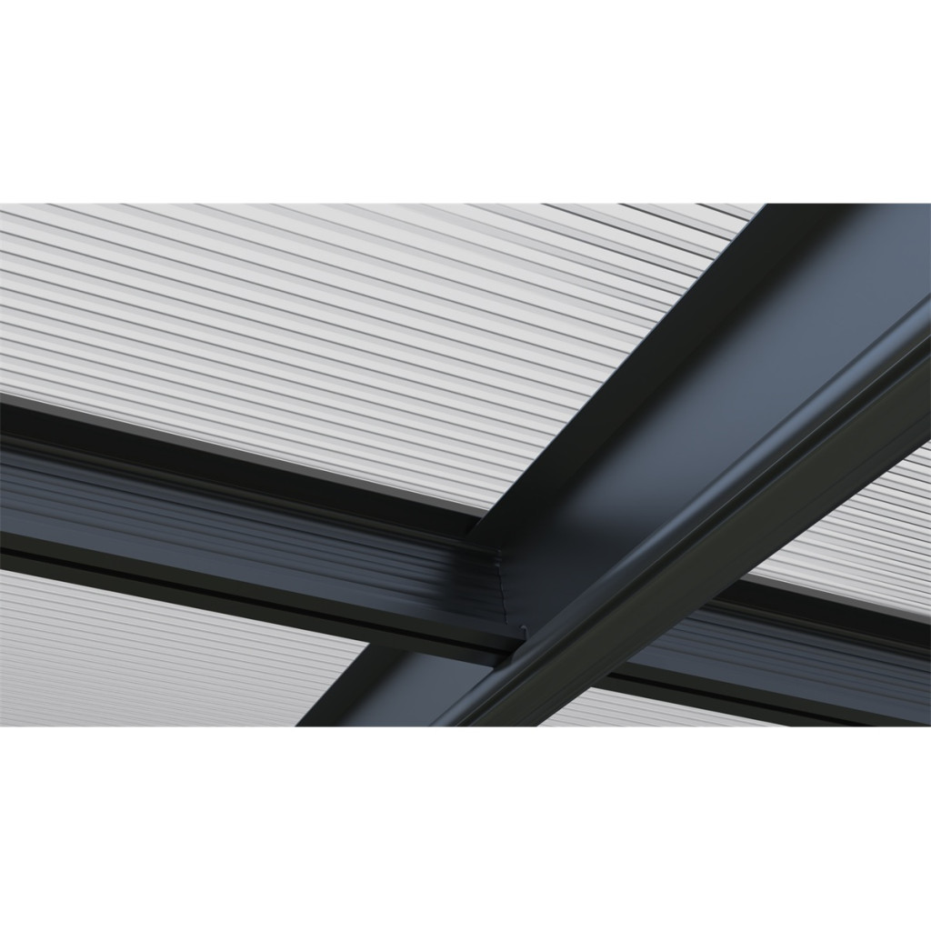 • Kiváló minőségű polikarbonát tető: a 6 mm-es, kétkamrás, UV-védelemmel ellátott panelek átengedik a fényt, ugyanakkor hatékonyan védenek az időjárás viszontagságai és a napfény ellen.